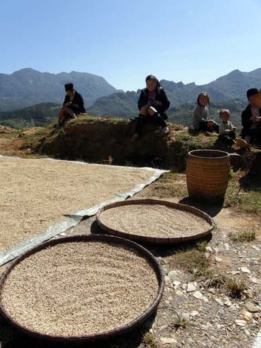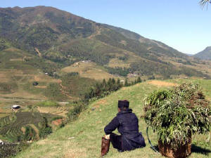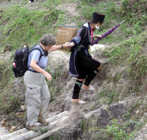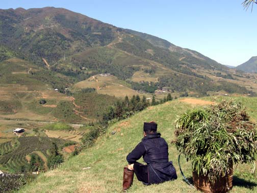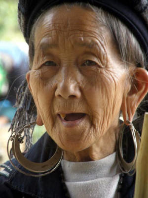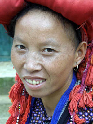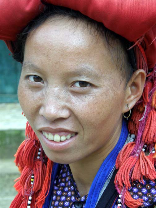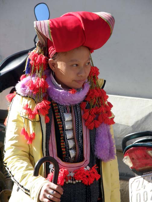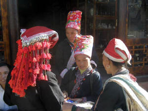 Red Dao women walk 5-10 miles each day to bring their goods to market- a hard