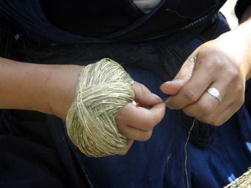 Hand spinning thread from plants