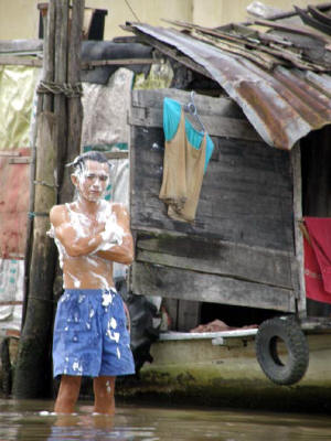 The Mekong is both their highway and shower